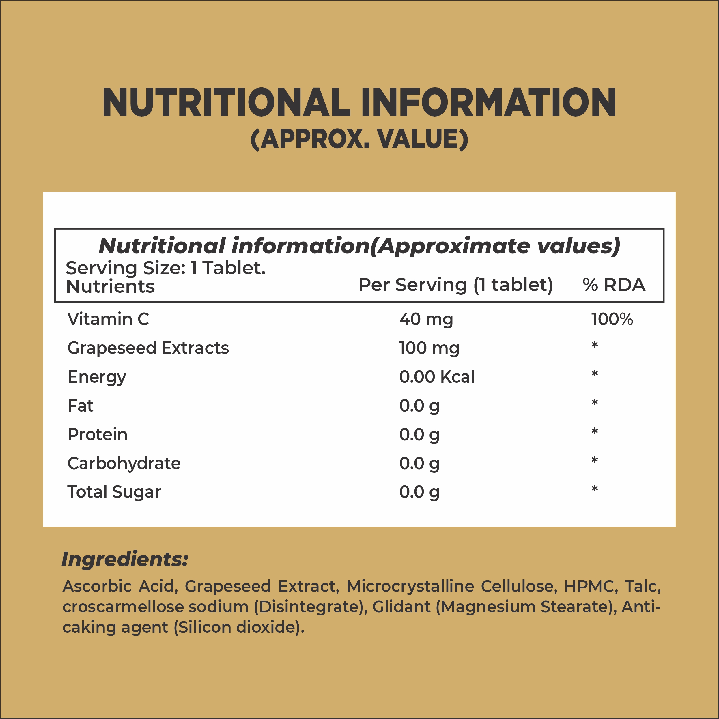 GRAPESEED WITH VITAMIN C FOOD SUPPLEMENT TABLETS