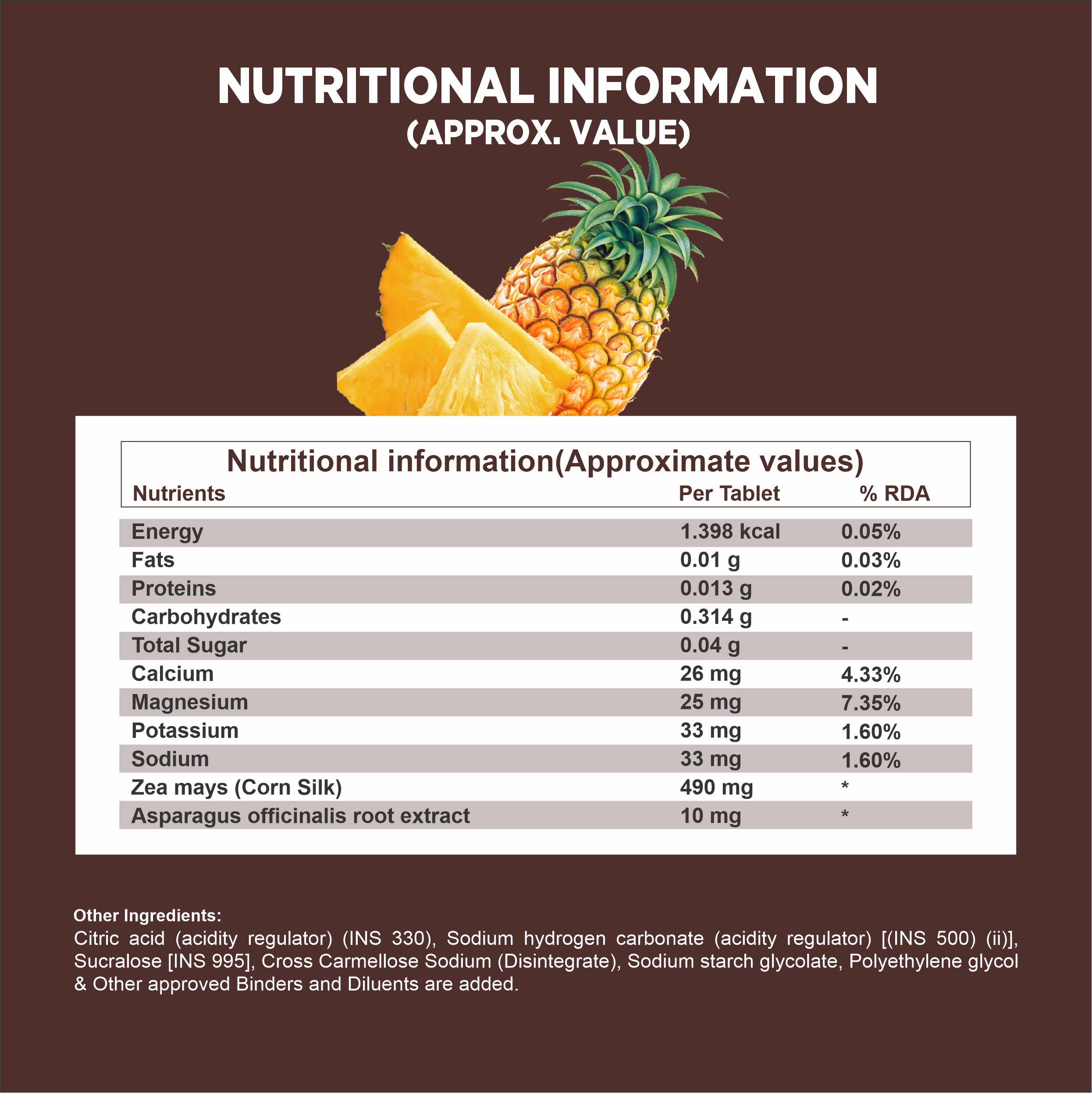 % RDA is based on man sedentary work s per ICMR. *Recommended Daily Allowance (RDA) value not yet established.