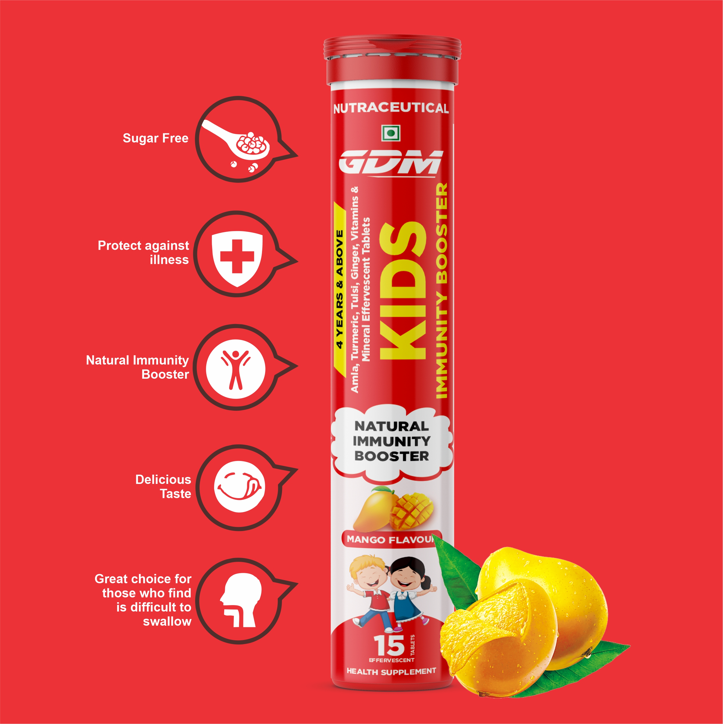 GDM Kids Immunity Booster is available in magic mango flavour.