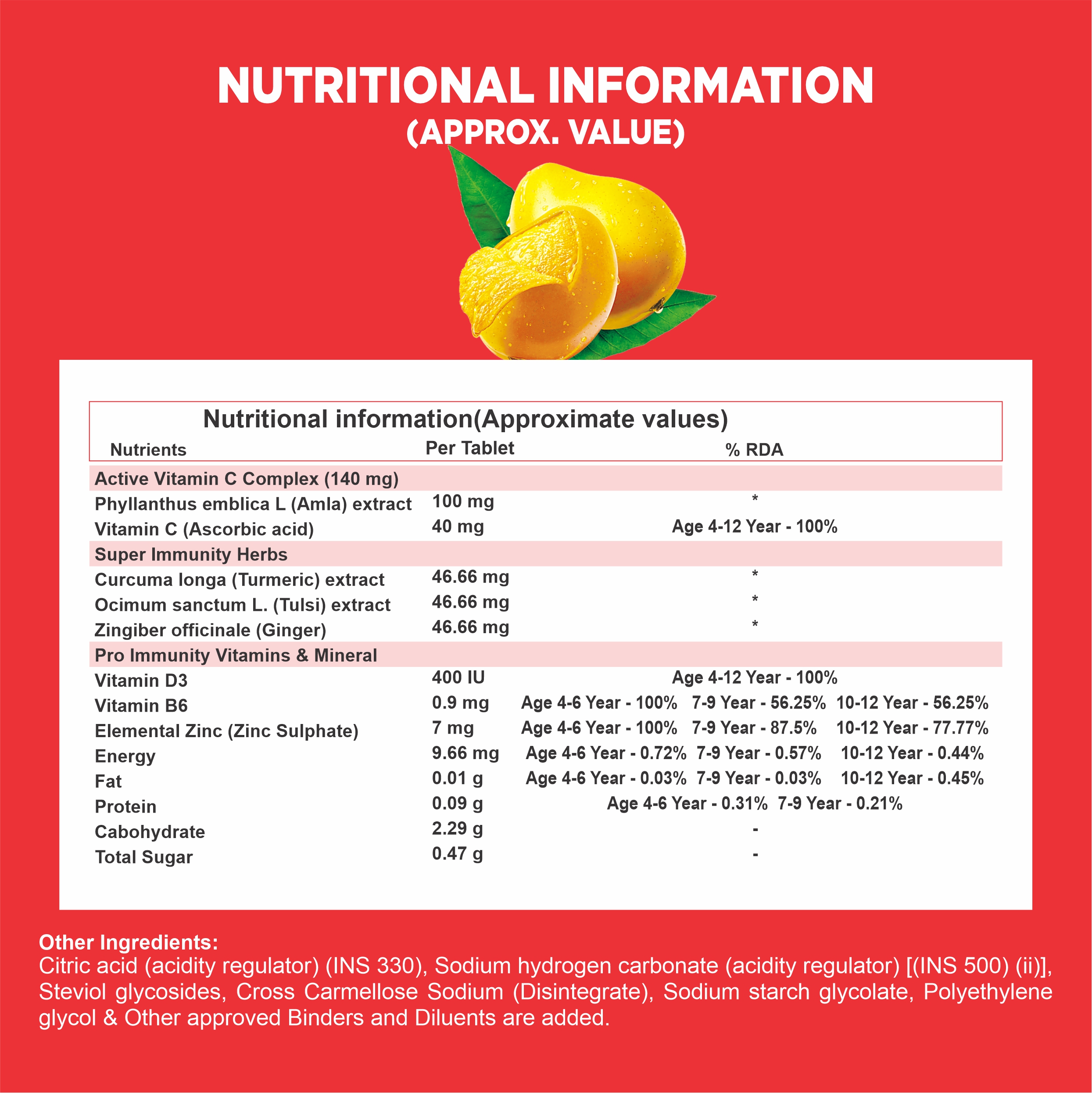 GDM Kids Immunity Booster formulated with intelligent combination of 8 natural immunity boosting ingredients that helps the kids be strong with superpowers of Amla, Vitamin C that helps to protect from harmful pathogens, Curcumin, Ginger and Tulsi that contributes to strengthen your body’s defences and Vitamin D3, Vitamin B6 and Zinc that helps to build stronger immune system. Each effervescent tablet with magic mango flavour with high quality, pure, natural and clinically proven ingredients help to boost your kid’s immune health and helps stay healthy year-round. Added advantage of GDM original effervescent nutrition is that it helps to provide faster nutrients absorption, higher bioavailability and is gentle on stomach as compared to traditional tablets which kids find it difficult to chew or swallow and are loaded with artificial flavour and sugars