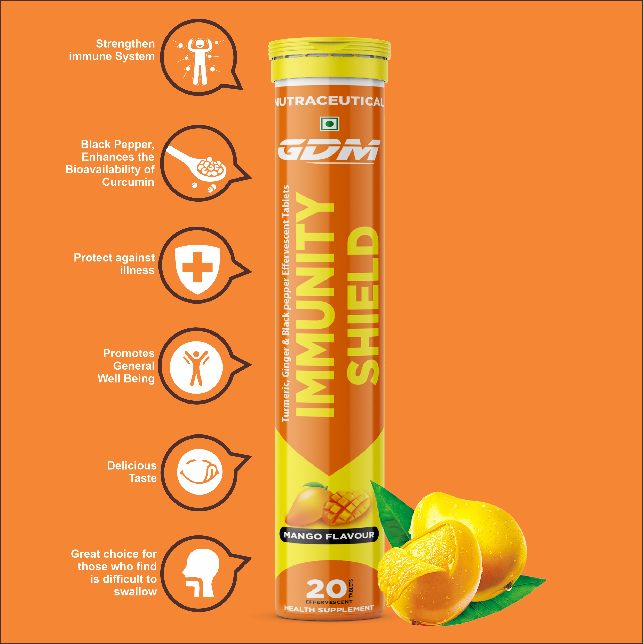 • Immunity Shield Effervescent Tablet contains traditional medicine and Curcumin (turmeric extract) as the main ingredients to strengthen your immune system.